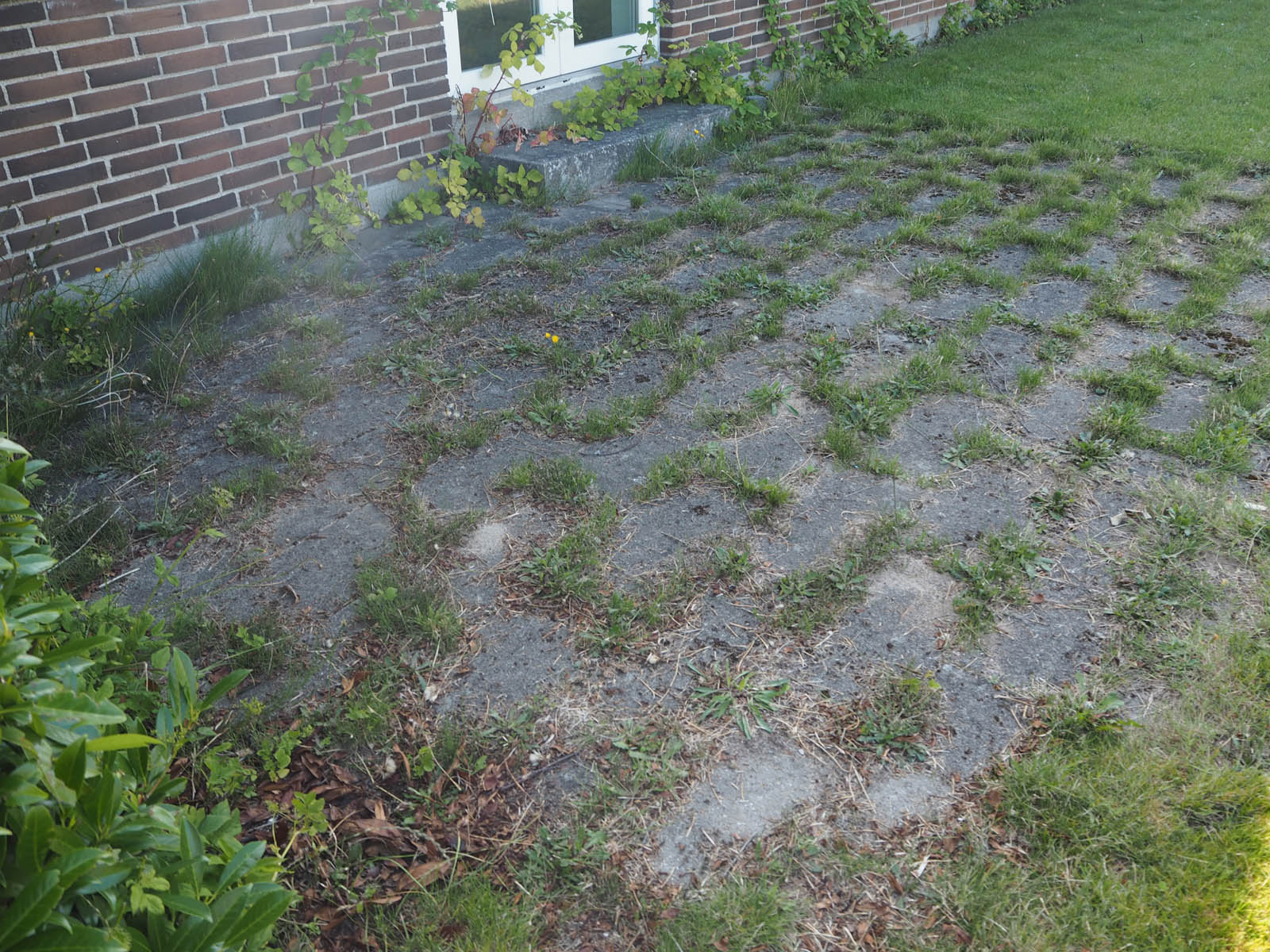 Før og efter billeder fra arbejde med Kwern Greenbuster fliserenser.